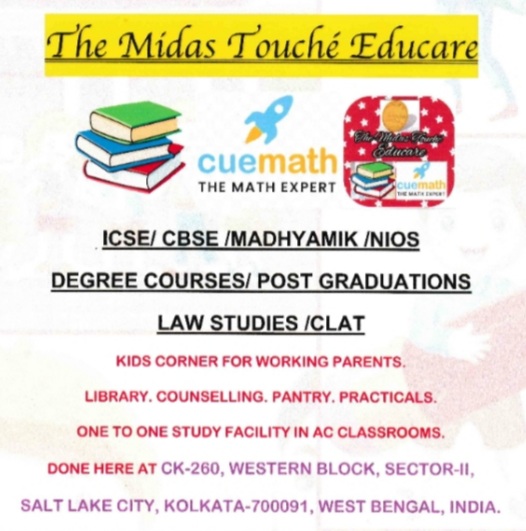 The Midas Touche Educare is the Education wing of The Midas Touche Group- Best Learning Way and Best Tutorial in Kolkata both Online and Offline. With the initiative of Ananya De Das and in collaboration with Abhinandan Das and Abhishikta Das, as Co-ordinators, an Unique system Of Education has been commenced. May it be School Children…..or the College Students…..there is a huge burden of Homework. In Pandemic even online classes included lots of assignments for the Students. The Students needed fun in education both online and offline. The Tutorial introduced a system of NO HOMEWORK studies. Students will learn and prepare studies in the Tutorial itself… on top will complete their Institutional Homework in the Tutorial. The Air Conditioned classes…Pre or Post Pandemic included lots of entertainment in studies. First time Pantry is introduced for the students of all categories. Students can straight away come to the Tutorial from Schools or Colleges….complete their studies here and then return home freely……Huge Library Facility is available…..all kinds of food and refreshments are arranged here…